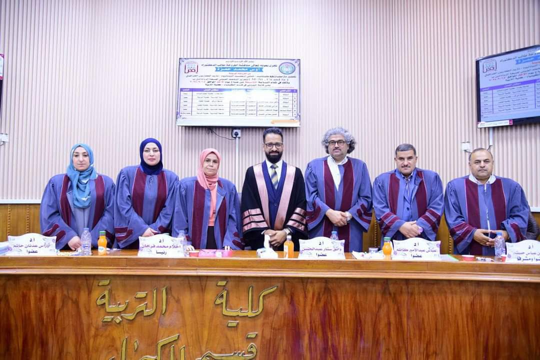 نوقشت اطروحة دكتوراه في قسم الكيمياء بكلية التربية جامعة القادسية والموسومة بـ( تحضير متراكبات M كوبلتيت / ثنائي أوكسيد التيتانيوم / نتريد الكاربون الجرافيتي ( M = Ni , Cu ) لتعزيز التحطم الضوئي لصبغة الرودامين B ) للباحث اوس محمد حمزة وبإشراف الاستاذ الدكتور حسن عباس حبيب